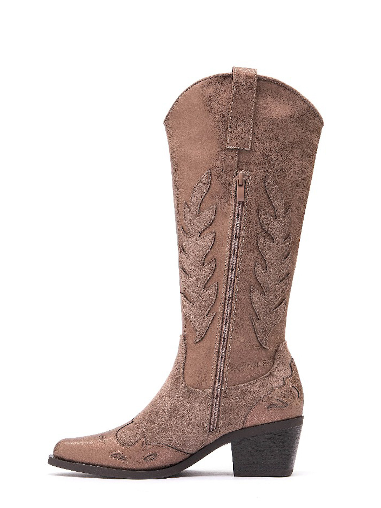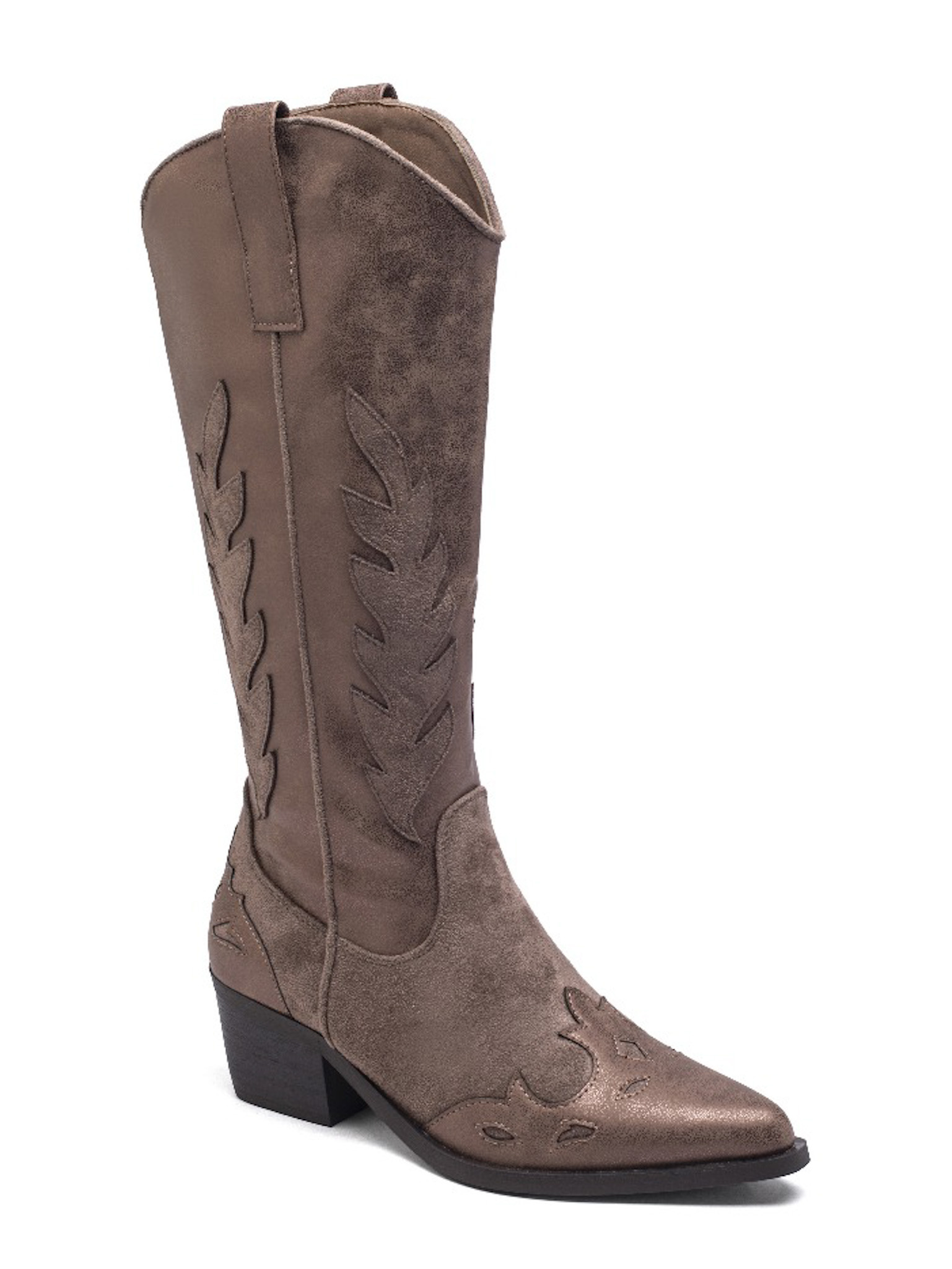 Hohe Stiefel Schwarz aus Velours mit Blockabsatz