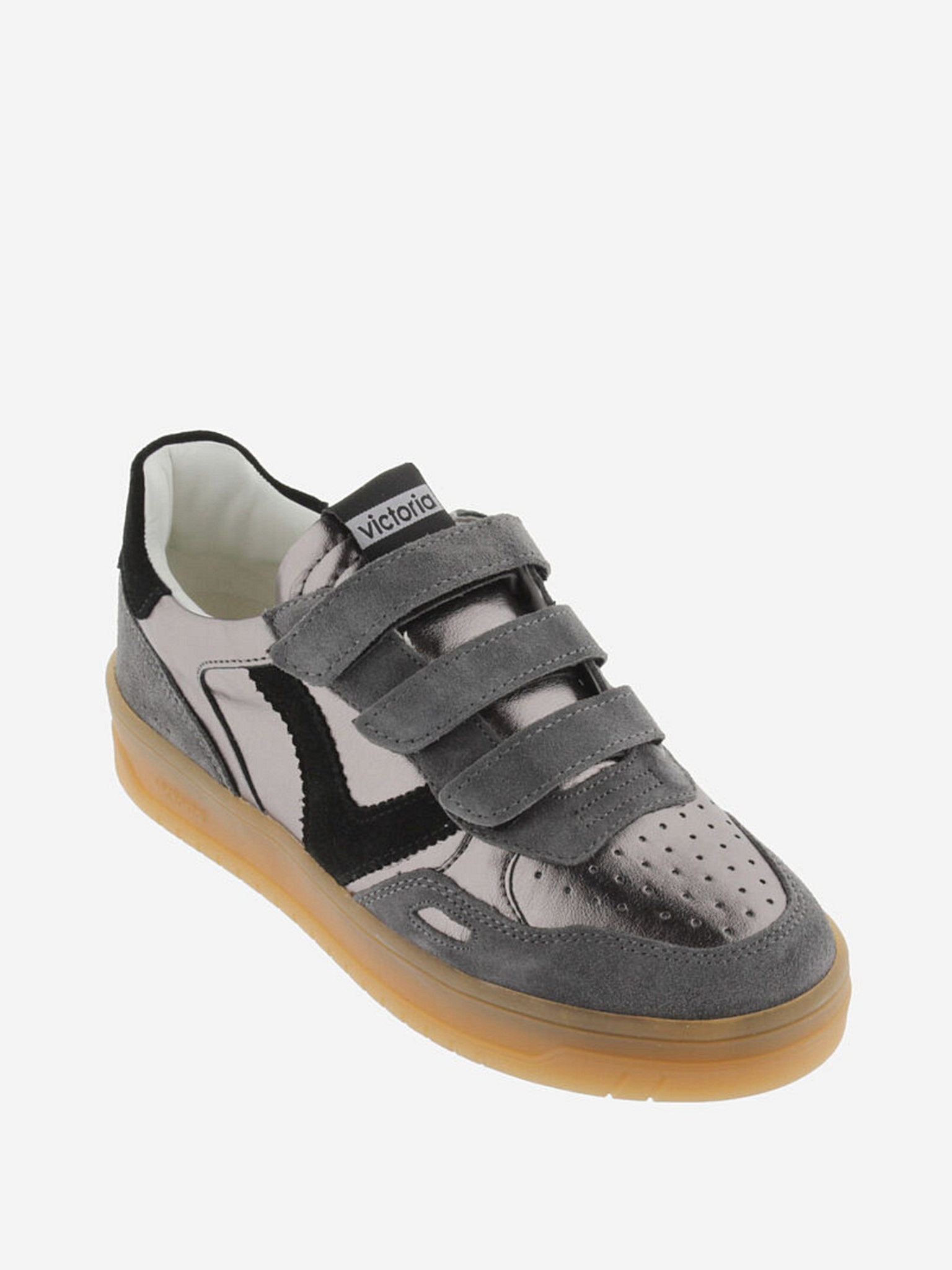 Victoria Sneakers sind seit Jahrzehnten für ihre hochwertigen Materialien, trendigen Designs und die perfekte Passform beliebt. Der Seul Strap ist ein Low-Cut-Modell, ideal als Damen Low-Top-Sneaker, und überzeugt durch die stilvolle Kombination aus glänzendem Grau, weichen Veloursleder-Overlays und kontrastierenden schwarzen V-Applikationen an den Seiten. Die transparente, voluminöse Chunky-Sohle verleiht dem Sneaker einen modernen und modischen Look, während die Farbgebung warm und vielseitig bleibt.