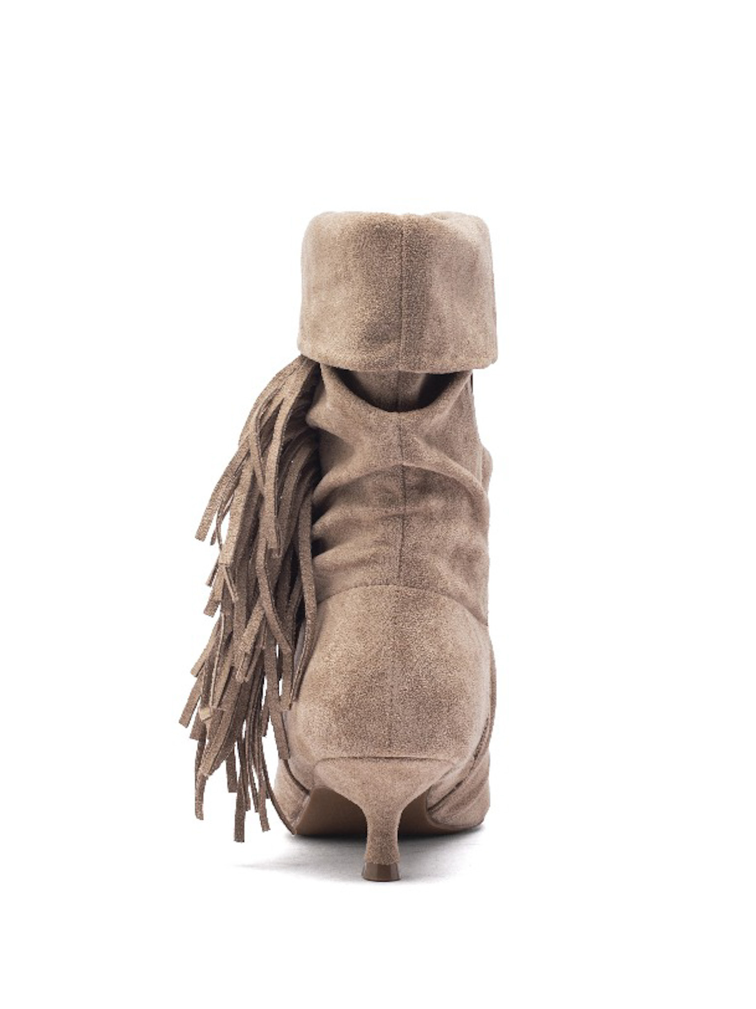 Khaki-Wildleder-Stiefeletten mit Fransen