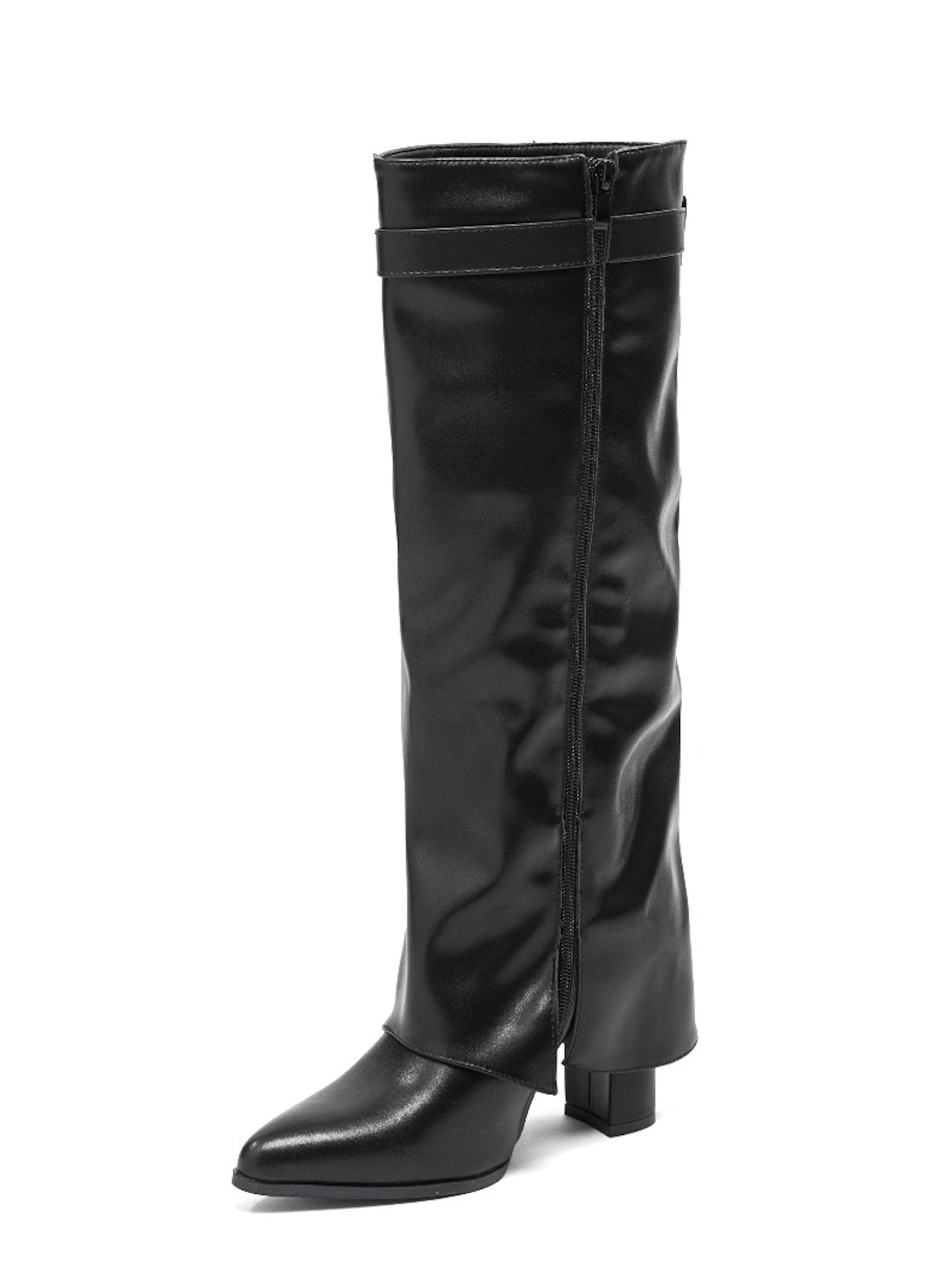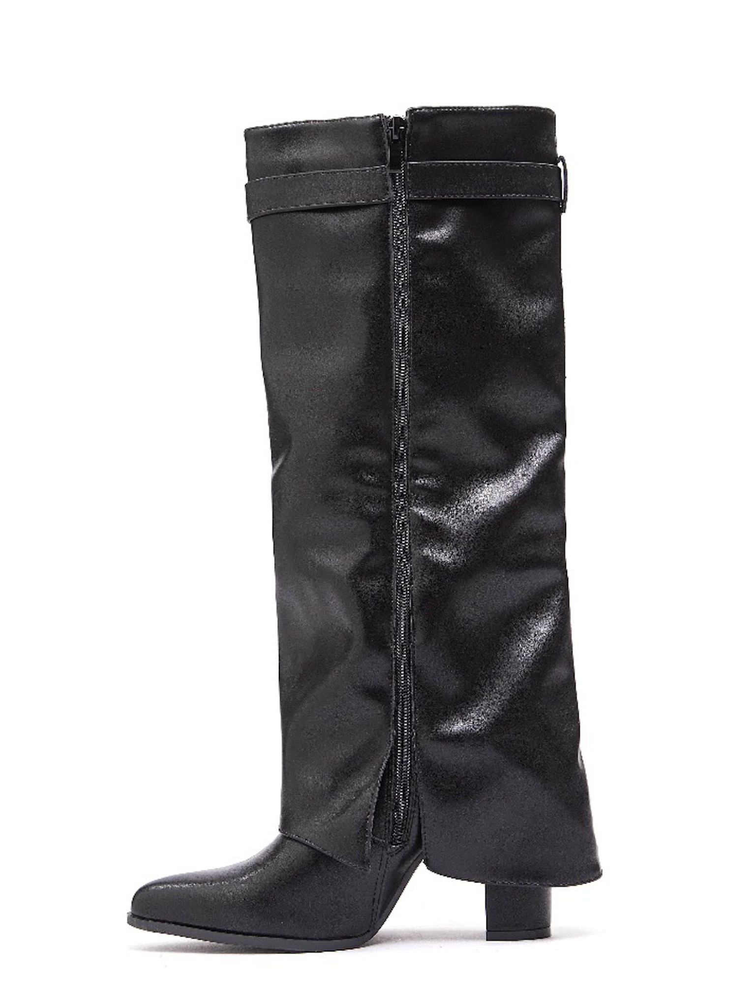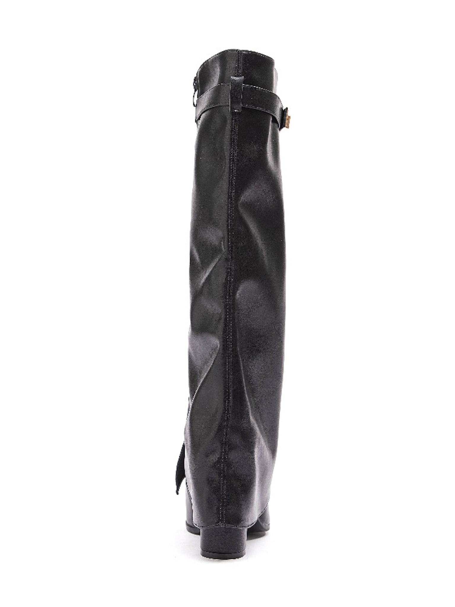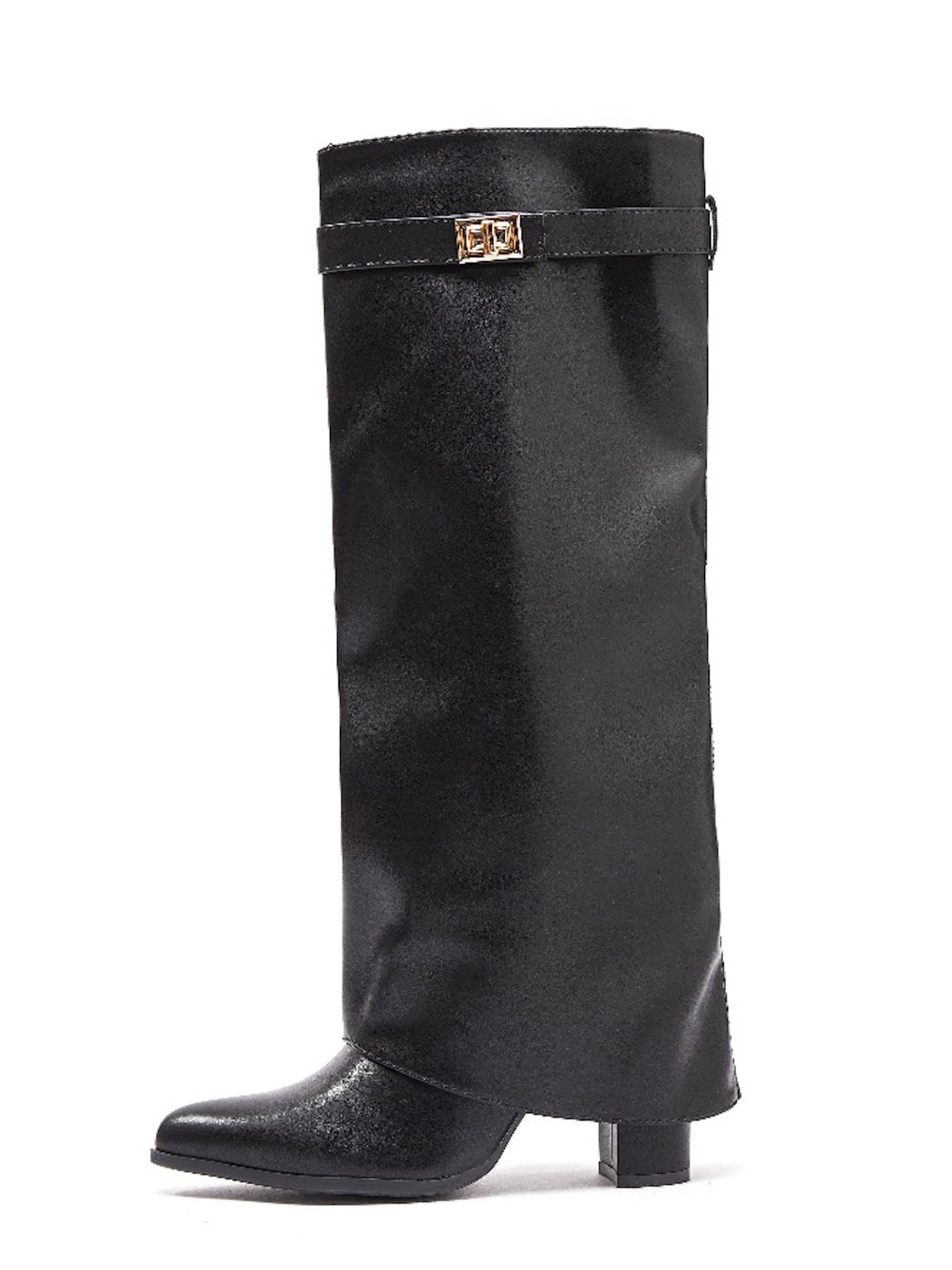 Schwarz Hohe Stiefel Klappe Goldschnalle