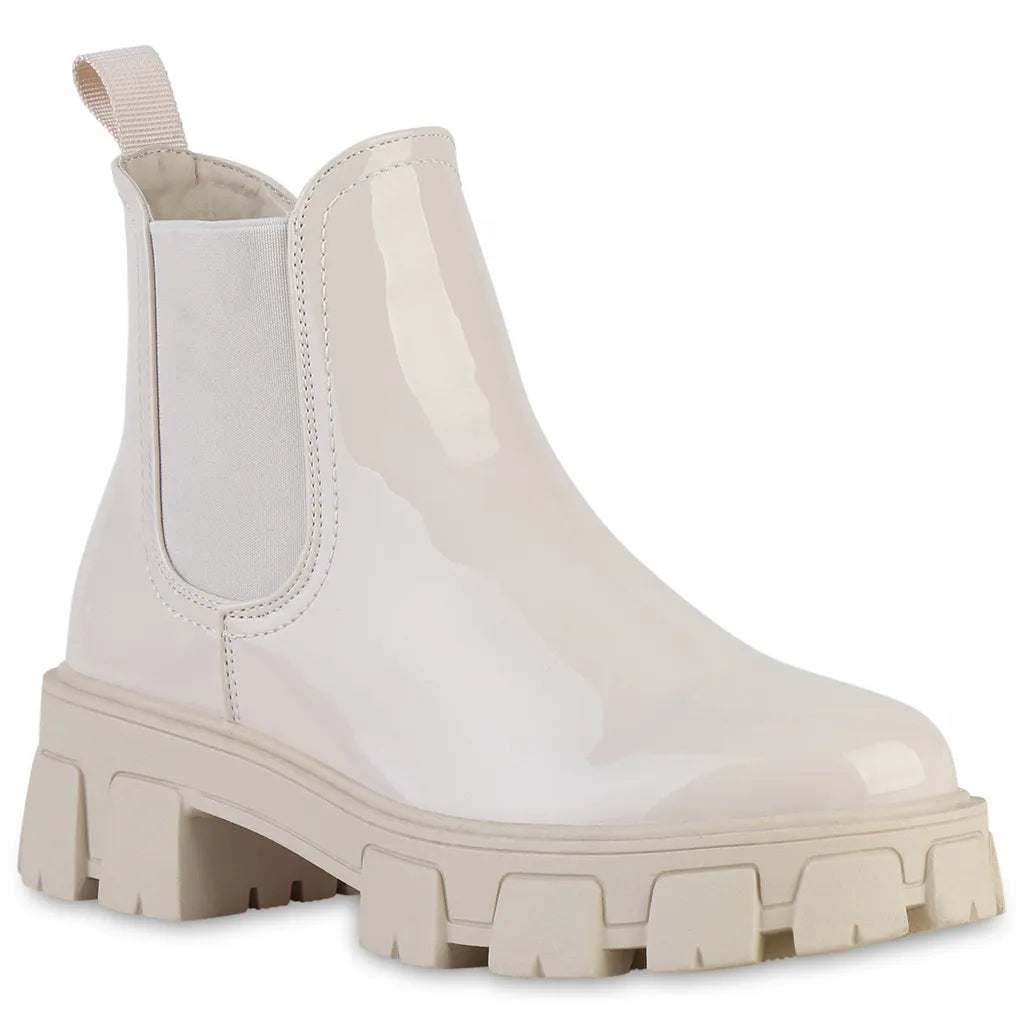 Trendige Chelsea Boots Beige Lack
