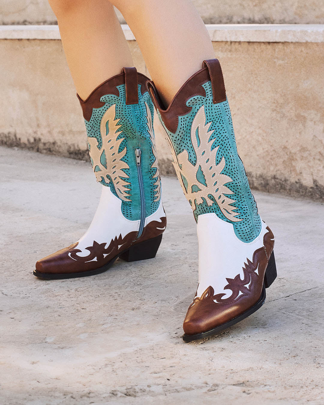 Yeehaw! Sind Sie auf der Suche nach dem ultimativen Western-Stil? Dann shoppen Sie unsere braunen Retro-Cowboystiefel. Diese Stiefel lassen sich mühelos kombinieren und verleihen Ihrem Outfit einen Hauch von Western-Flair. Der authentische Cowboystiefel-Stil wird durch die weißen Bereiche, die schönen Nähte und die Details am Schaft unterstrichen, die einen Hauch von handwerklichem Charme verleihen. Die bequeme Passform mit dem stabilen 4-cm-Absatz sorgt dafür, dass Sie den ganzen Tag mühelos herumlaufen können.