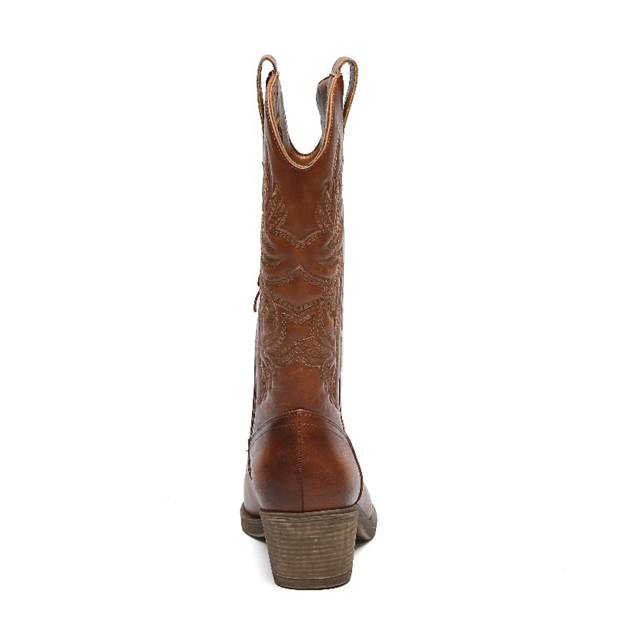 Das Design dieser Cowboystiefel ist von den zeitlosen Klassikern inspiriert, aber mit einem modernen Twist. Die spitz zulaufende Zehenkappe und der charakteristische schräge Absatz sorgen für einen authentischen Western-Look. Das weiche Futter und das gepolsterte Fußbett sorgen den ganzen Tag über für Komfort. Egal, ob Sie auf ein Festival gehen, einen Abend ausgehen oder einfach nur Ihr Alltagsoutfit auffrischen wollen, diese camelfarbenen Cowboystiefel mit Nähten sind die perfekte Wahl. Ziehen Sie alle Blicke auf sich mit diesen Cowboystiefeln, die man einfach haben muss. Bestellen Sie noch heute.