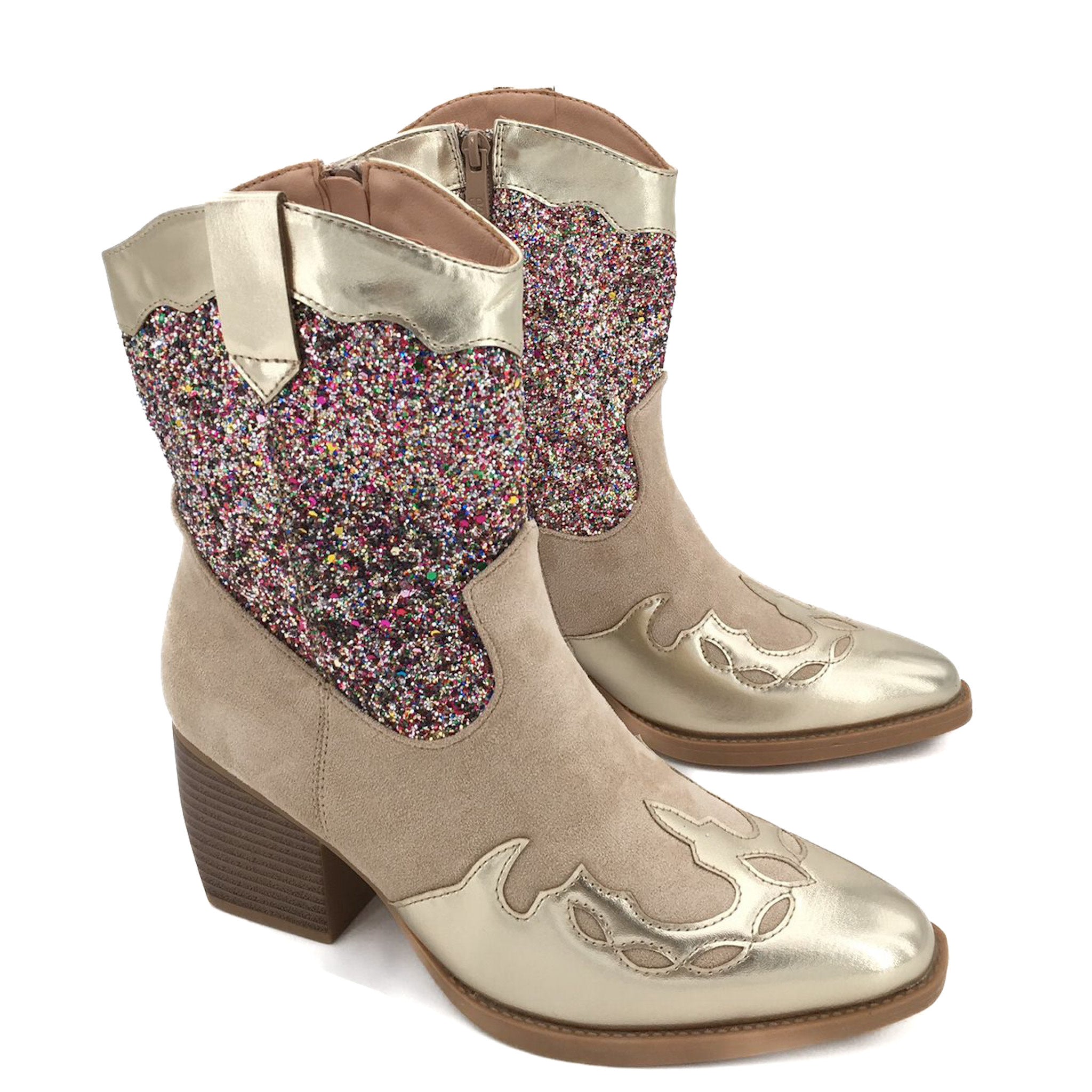 Smile Favorites Cowboystiefel Goldfarben Kurz Größe: 36