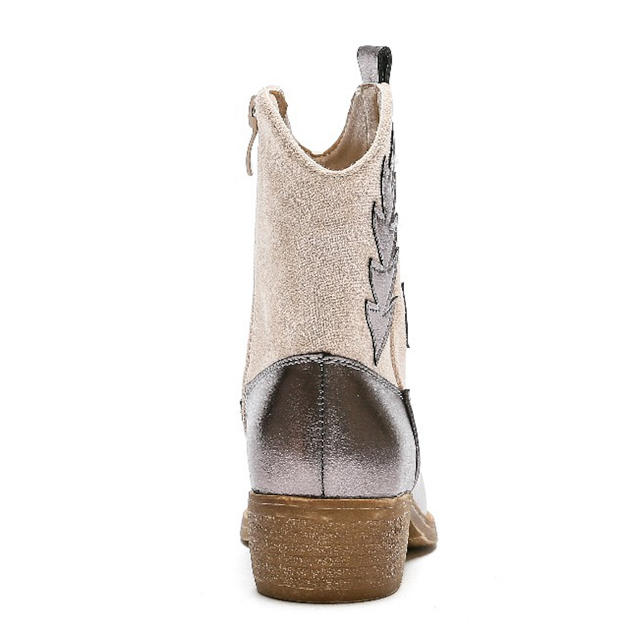 Verleihen Sie Ihrer kleinen Abenteurerin einen Hauch von Westernstil mit diesen Cowboystiefeln für Mädchen! Diese trendigen Stiefel kombinieren ein cooles Design mit verspielten Akzenten. Das beigefarbene Veloursleder sorgt für ein weiches Tragegefühl, während die Metallic-Details für einen stylischen Twist sorgen. Perfekt für junge Cowgirls, die modische Schuhe mit Charakter lieben.