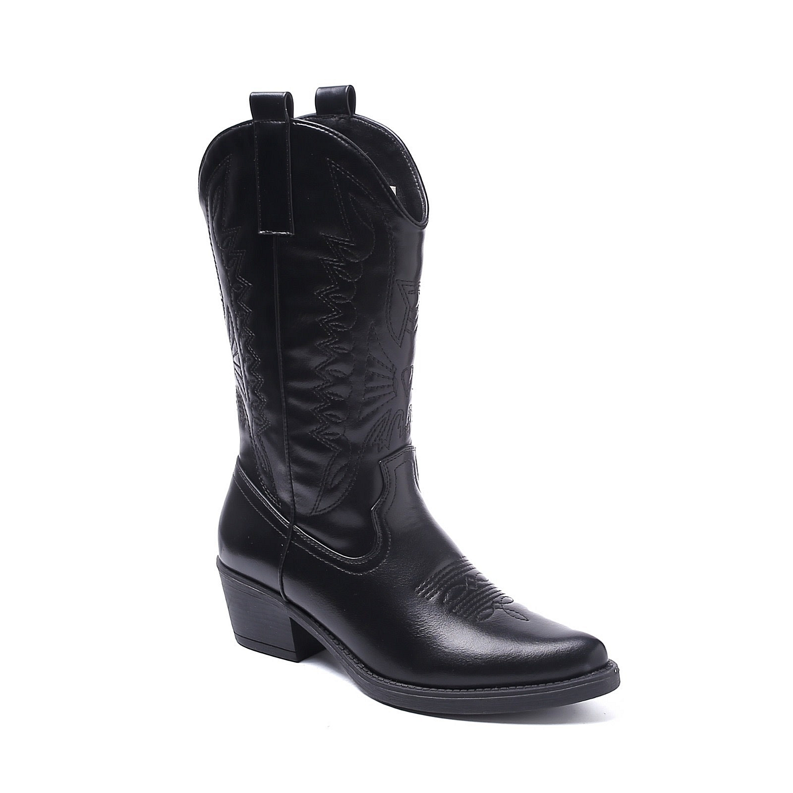 Ergänzen Sie Ihre Schuhsammlung um ein unverzichtbares Paar mit diesen schwarzen Cowboystiefeln für Damen. Bestellen Sie noch heute und verleihen Sie Ihrem Outfit einen coolen Western-Touch!