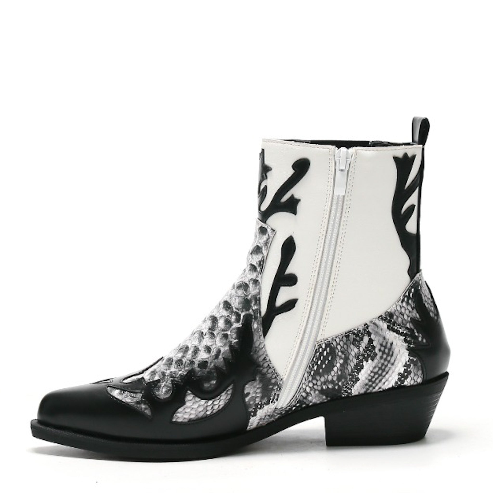 Hallöchen! Sind Sie bereit, Ihren Stil einen Hauch von Western mit diesen kurzen schwarzen Druck Cowboystiefel geben! Diese Must-Have-Westernstiefel sind die perfekte Wahl für alle, die ihrer Schuhkollektion einen einzigartigen und modischen Twist verleihen wollen. Die Cowboystiefel sind aus Kunstleder gefertigt, das für einen coolen Leder-Look sorgt und toll aussieht. Der coole Schlangenprint verleiht den Stiefeln einen ikonischen Western-Look, der sie sofort zum Hingucker macht.