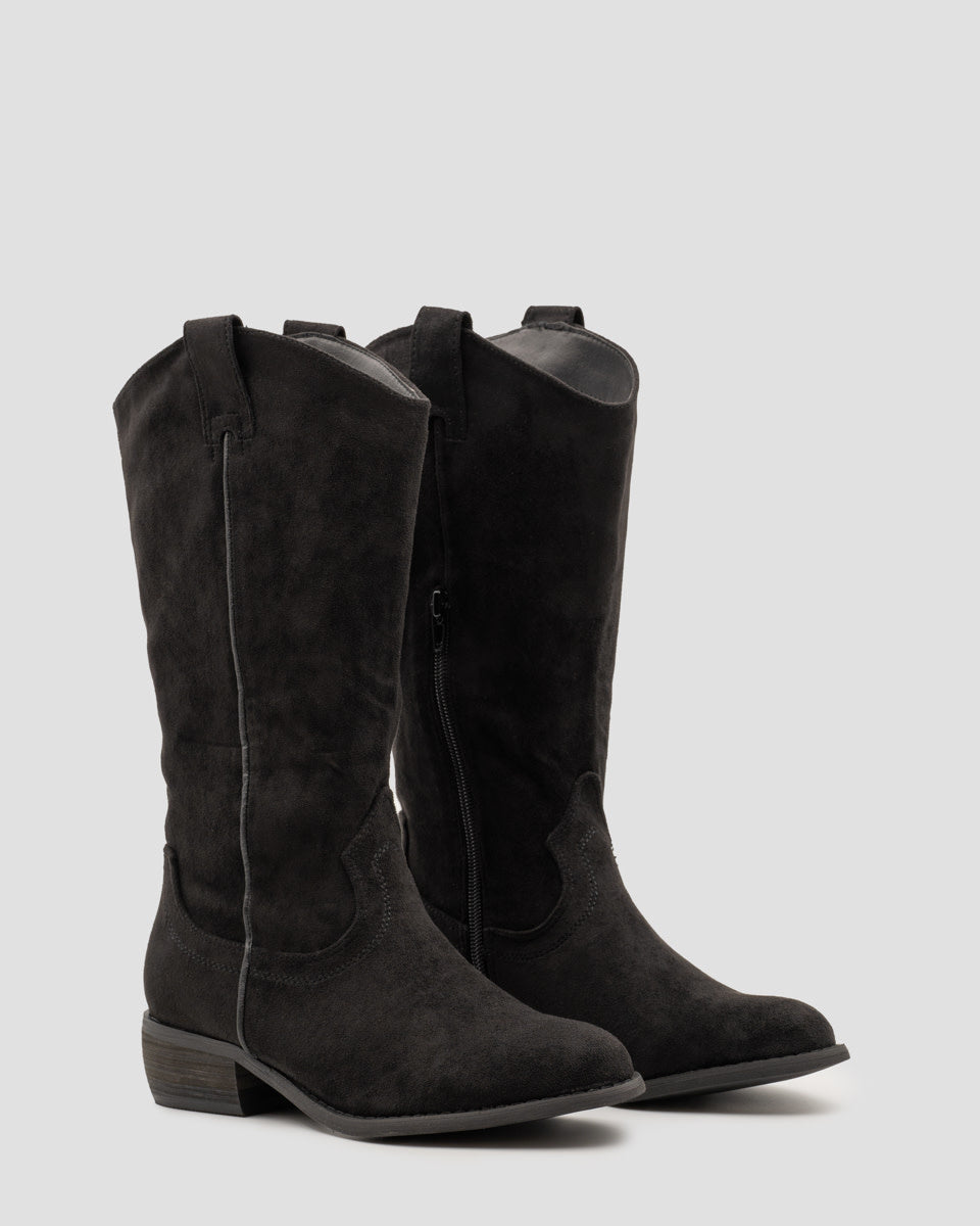 Cowboy Stiefel Schwarz Suedine Basic Low Heel