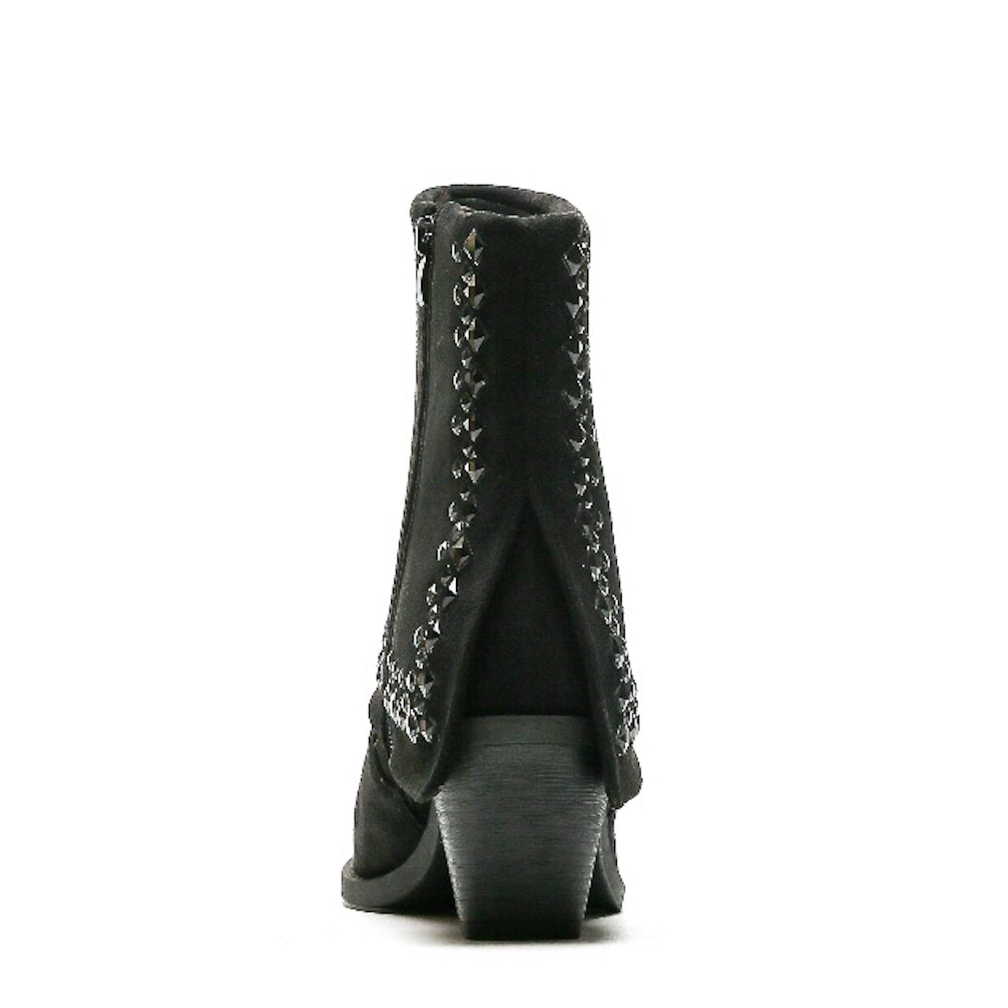 Schwarze Cowboystiefel aus Wildleder mit Klappe und Nieten