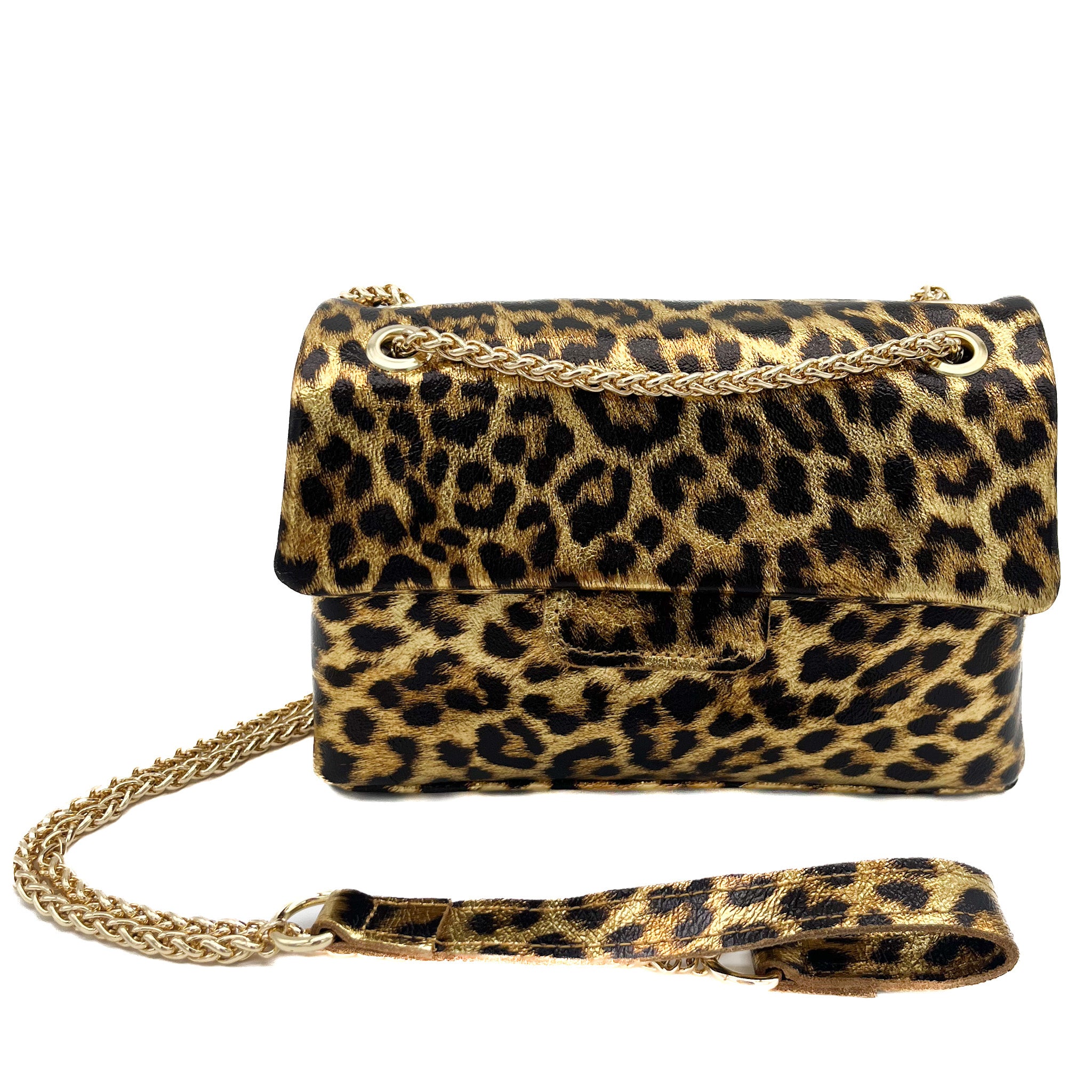 Trendige Crossbody-Tasche in Leopard Metallic