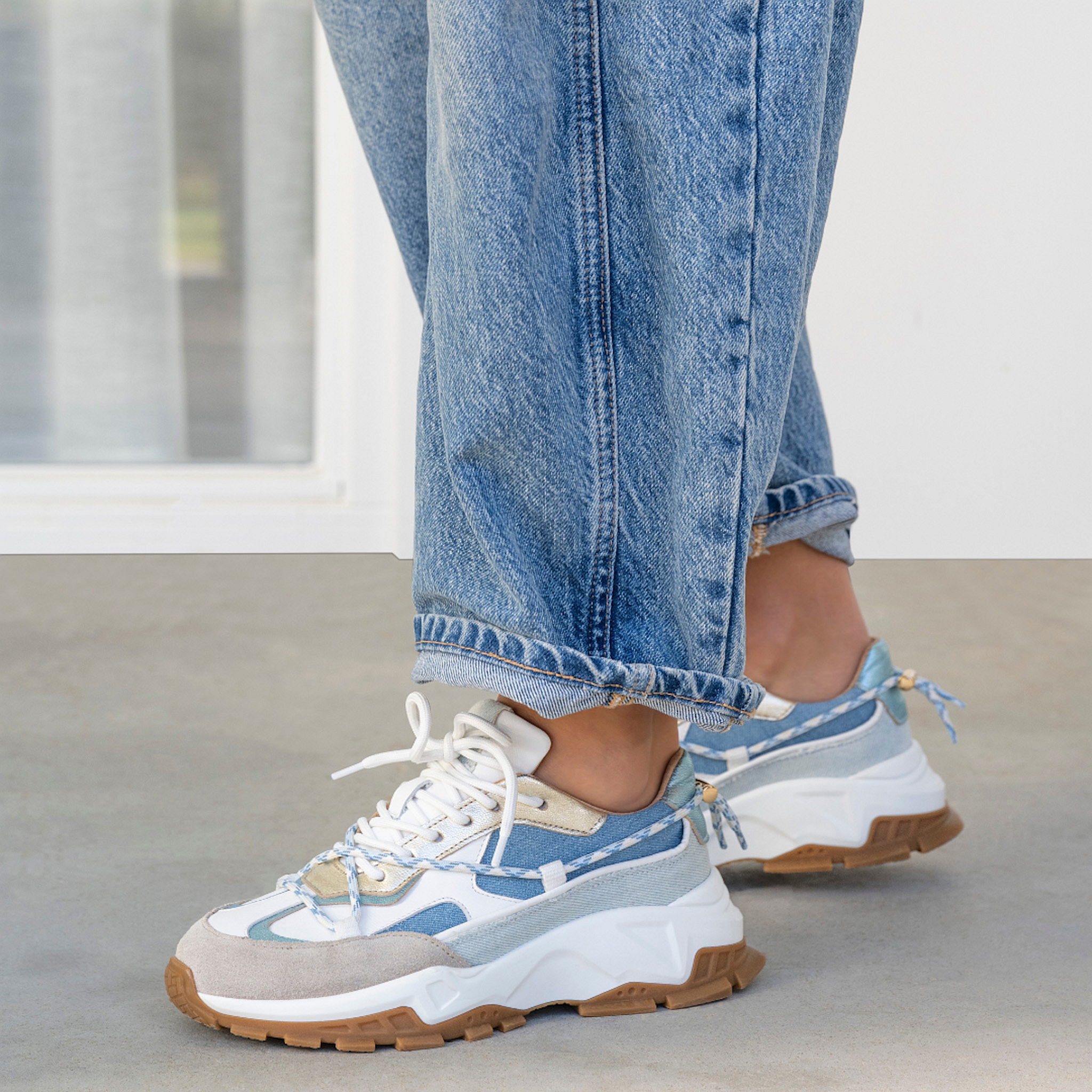 Diese Damenturnschuhe sind aus hochwertigen Materialien gefertigt, die sie nicht nur stylisch aussehen lassen, sondern auch langlebig machen. Die Kombination aus Denim und dezenten Glanzdetails macht diese Turnschuhe zu einem echten Hingucker.