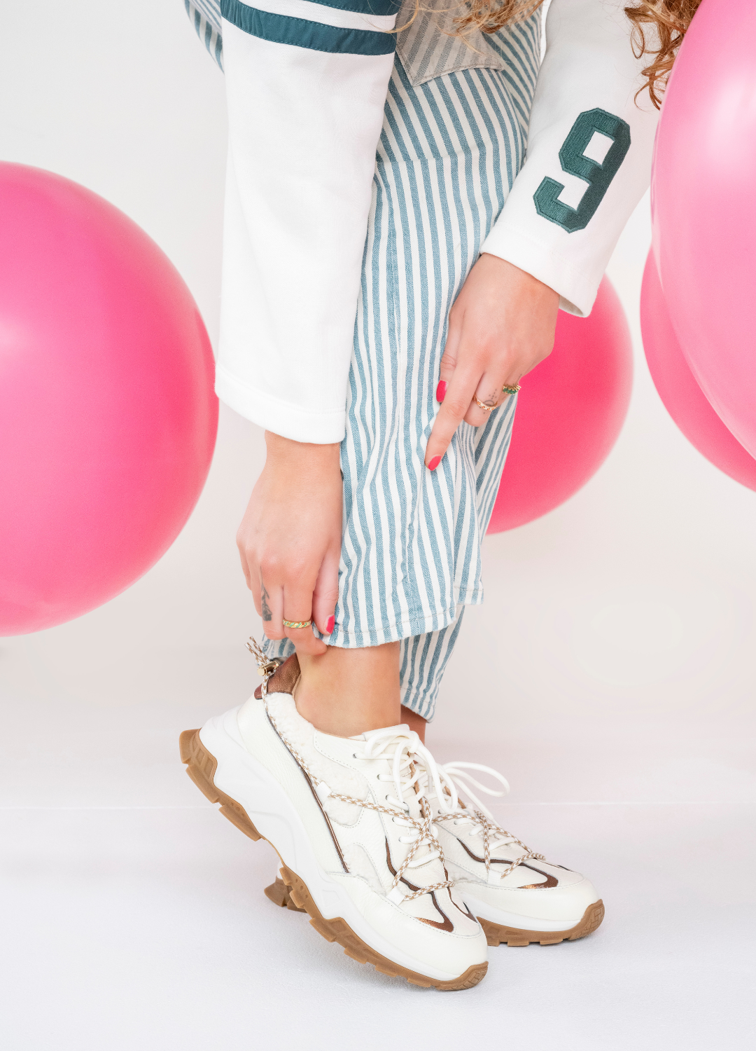 Der Bonney-Trainer mit Teddydetails. Dieser coole Turnschuh hat eine klobige Sohle und ist innen aus Leder und außen aus Teddystoff. Du kannst ihn entweder mit einer Hose, einem Kleid oder einer robusten Jeans kombinieren. Wofür wirst du dich entscheiden?