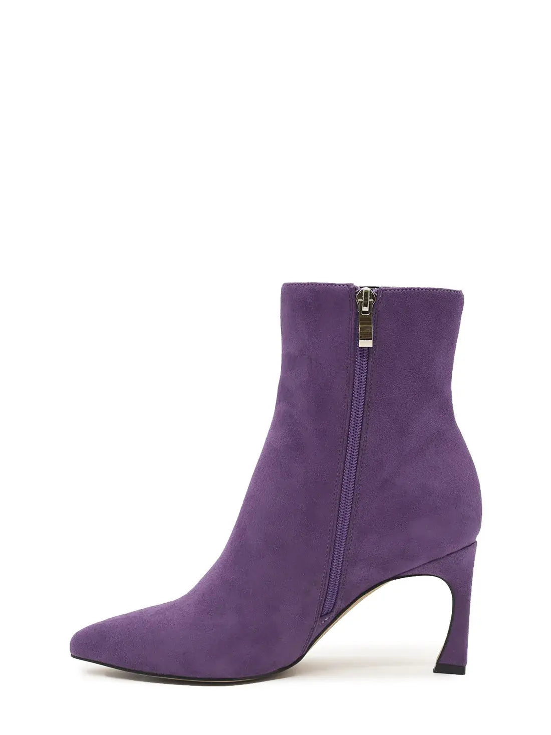 Lila Velourslederstiefel mit Absatz und Lederfußbett. Erhältlich in den Größen 36 bis 41. Einstiegsreißverschluss an der Innenseite. Lila das Musthave dieses Herbstes.