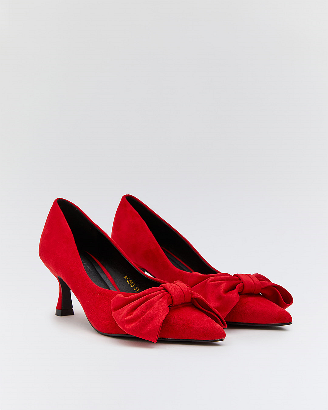 Stilvolle rote Wildlederabsätze mit Schleifendetail