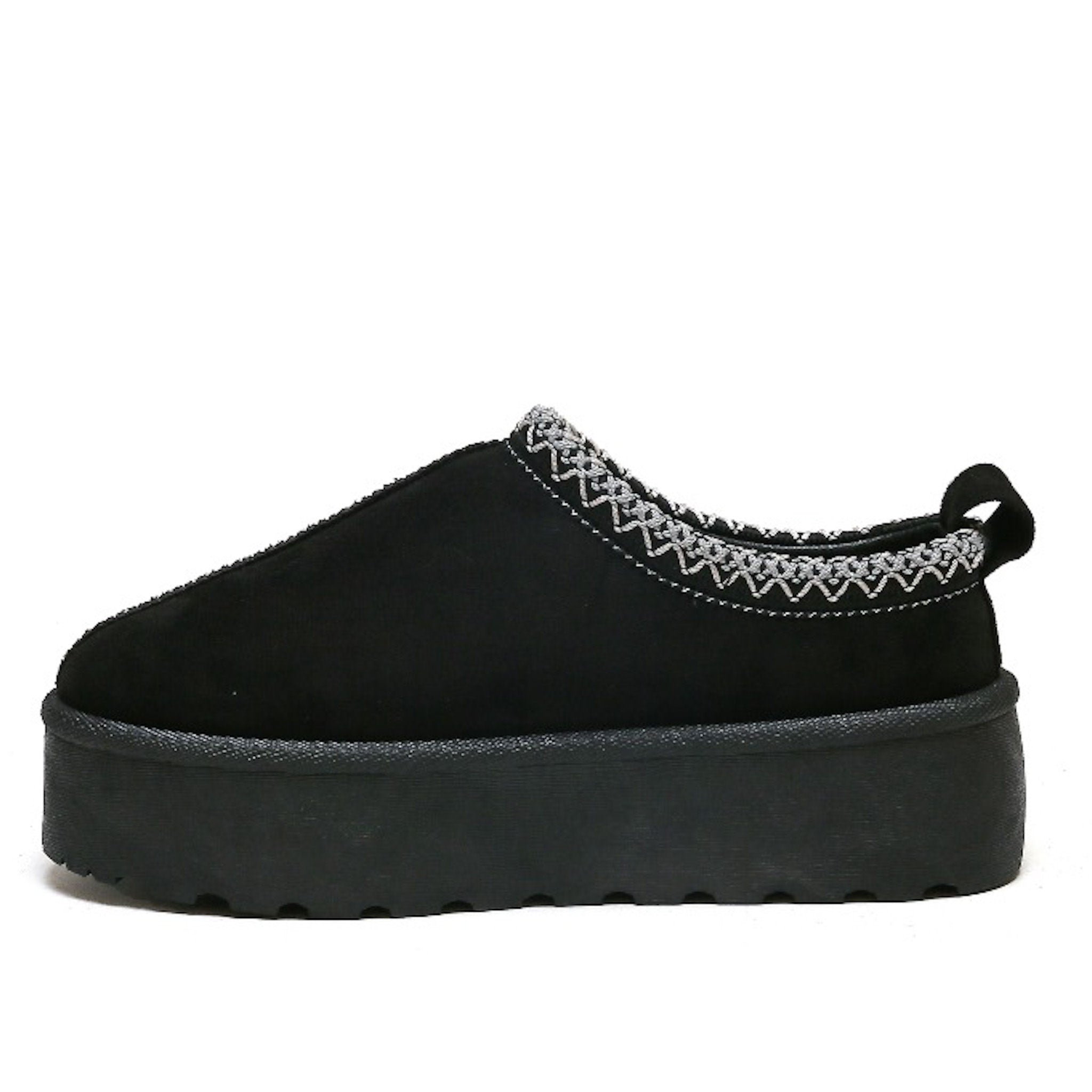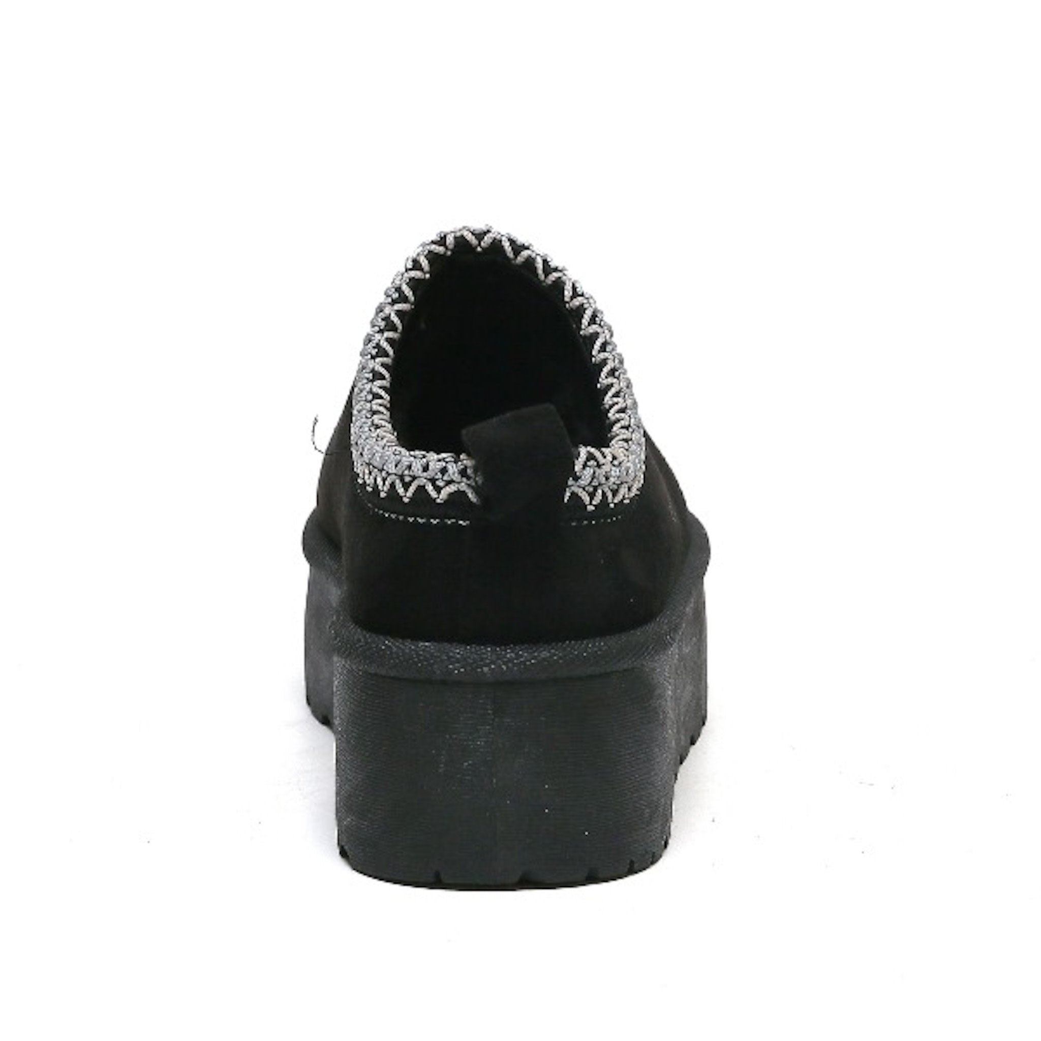 Schwarze Hausschuhe für Frauen. Diese trendigen Hausschuhe mit Plateausohle und Zickzack-Naht sind warm und bequem. Dieser Bestseller wird Ihre Füße in diesem Winter warm halten.