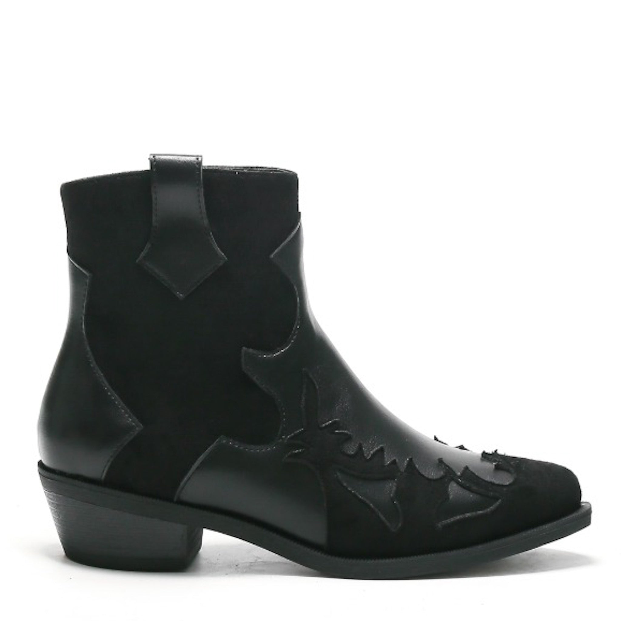 Mit diesen kurzen schwarzfarbenen Cowboystiefeln sind Sie bereit, Ihren eigenen abenteuerlichen Stil zu verwirklichen. Bestellen Sie noch heute und verleihen Sie Ihrer Garderobe einen Hauch von Wildwest!