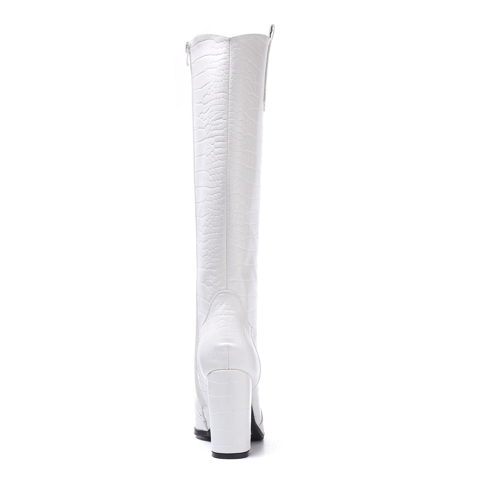 Weiße Kroko-Stiefel sind das Modeelement für alle, die auffällige Details und einen frischen Look lieben. Die Kombination aus zeitlosem Weiß und der Textur des Kroko-Prints macht sie trendy und elegant zugleich. Sie verleihen Ihrem Outfit einen luxuriösen Touch und lassen Sie auf beste Weise hervorstechen.