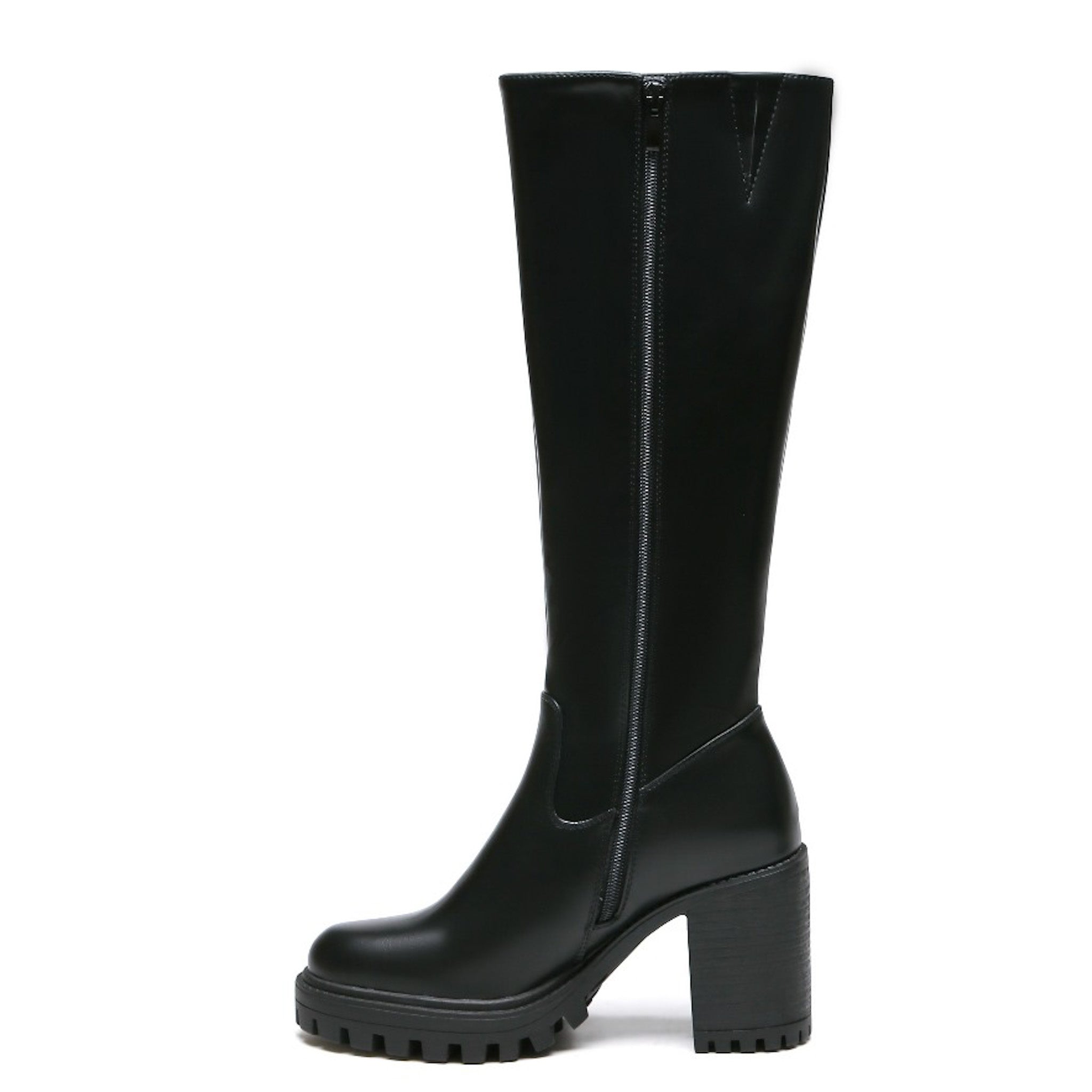 Für einen mutigen und stilvollen Look sind diese schwarzen Stiefel mit hohem Blockabsatz die perfekte Wahl. Diese zeitlosen Stiefel kombinieren Eleganz mit einem coolen Twist und passen zu jeder Gelegenheit. Das minimalistische, moderne Design macht es einfach, sie zu tragen, egal ob Sie zur Arbeit gehen, einen Abend ausgehen oder Ihr Freizeitoutfit aufwerten wollen.