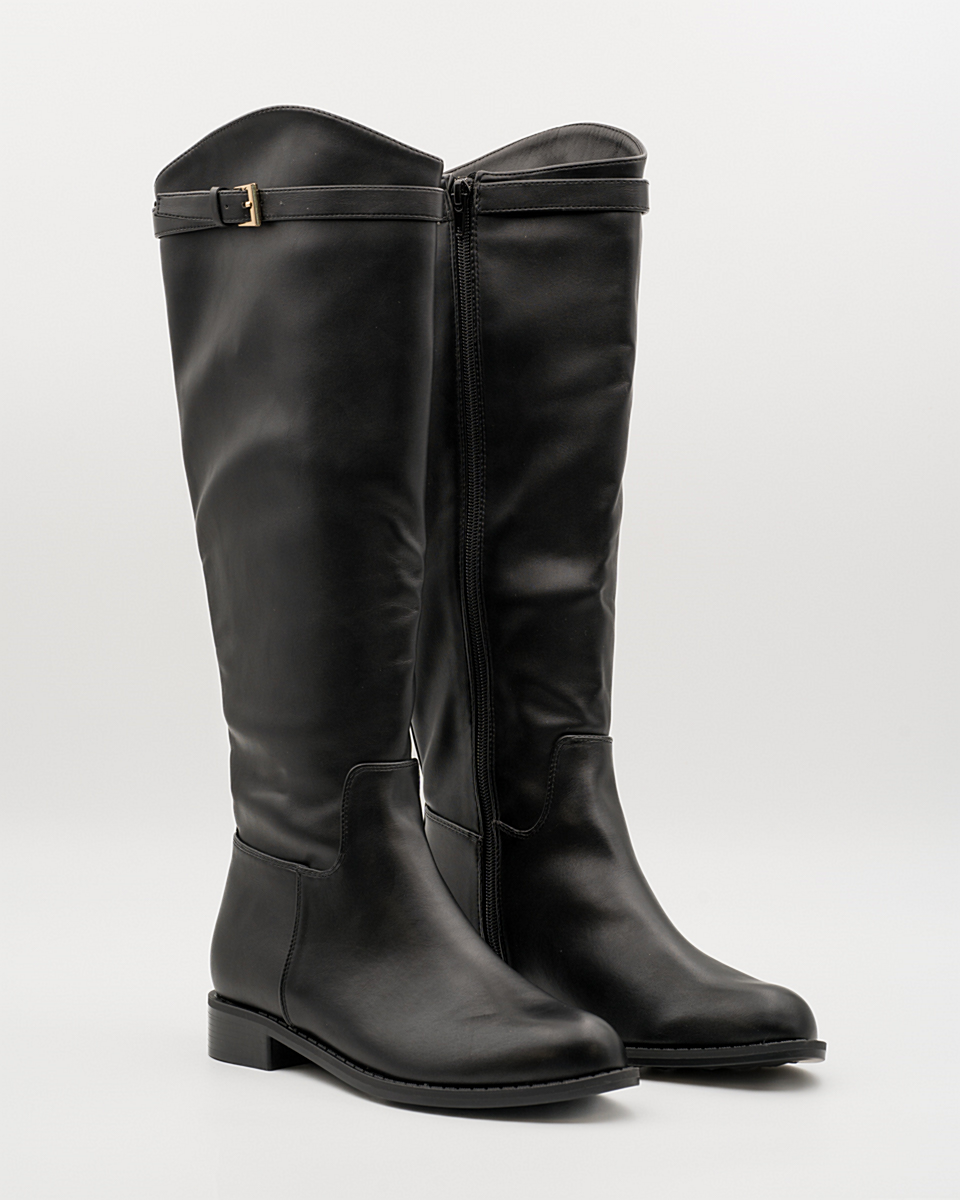 Stiefel Schwarz Lederlook Schnalle
