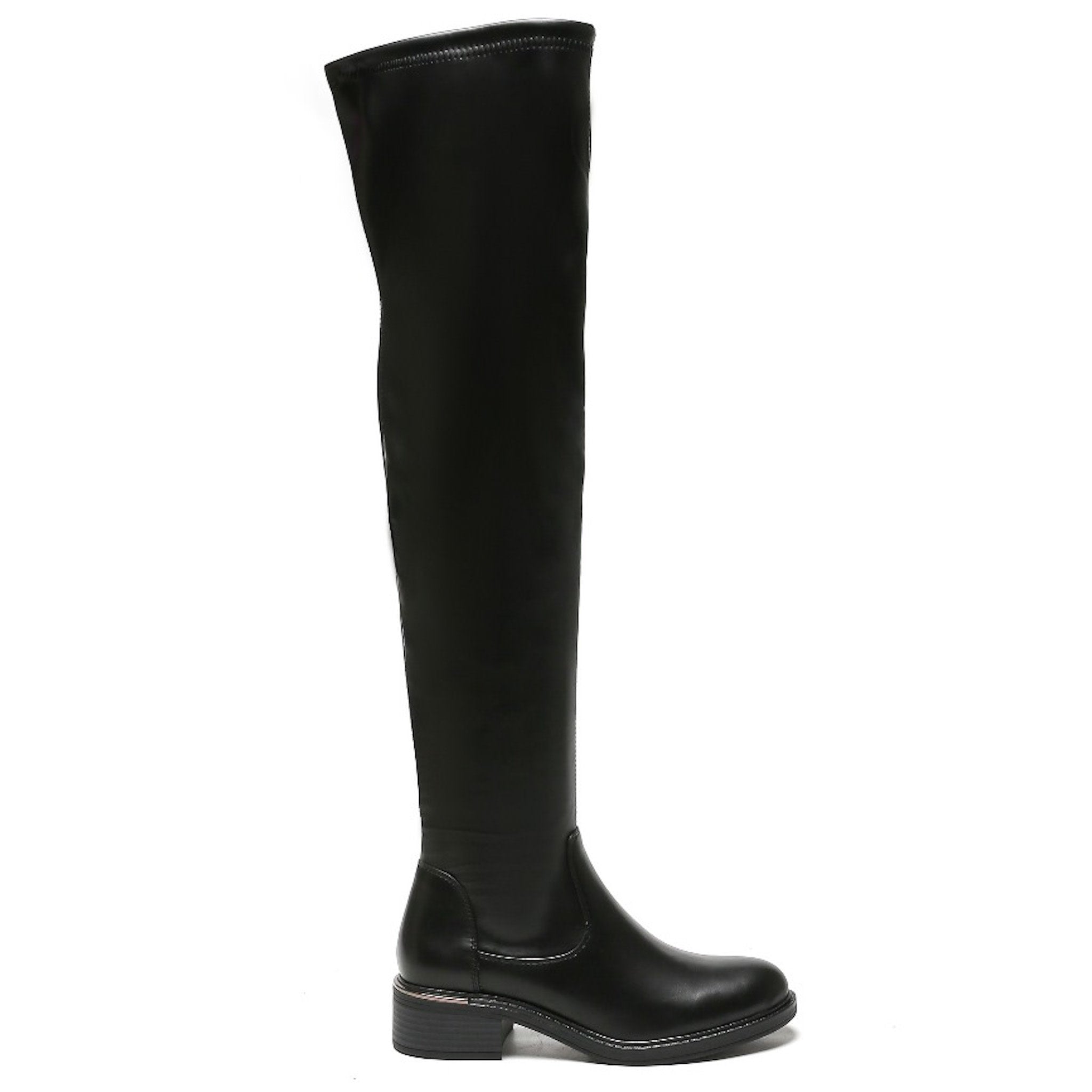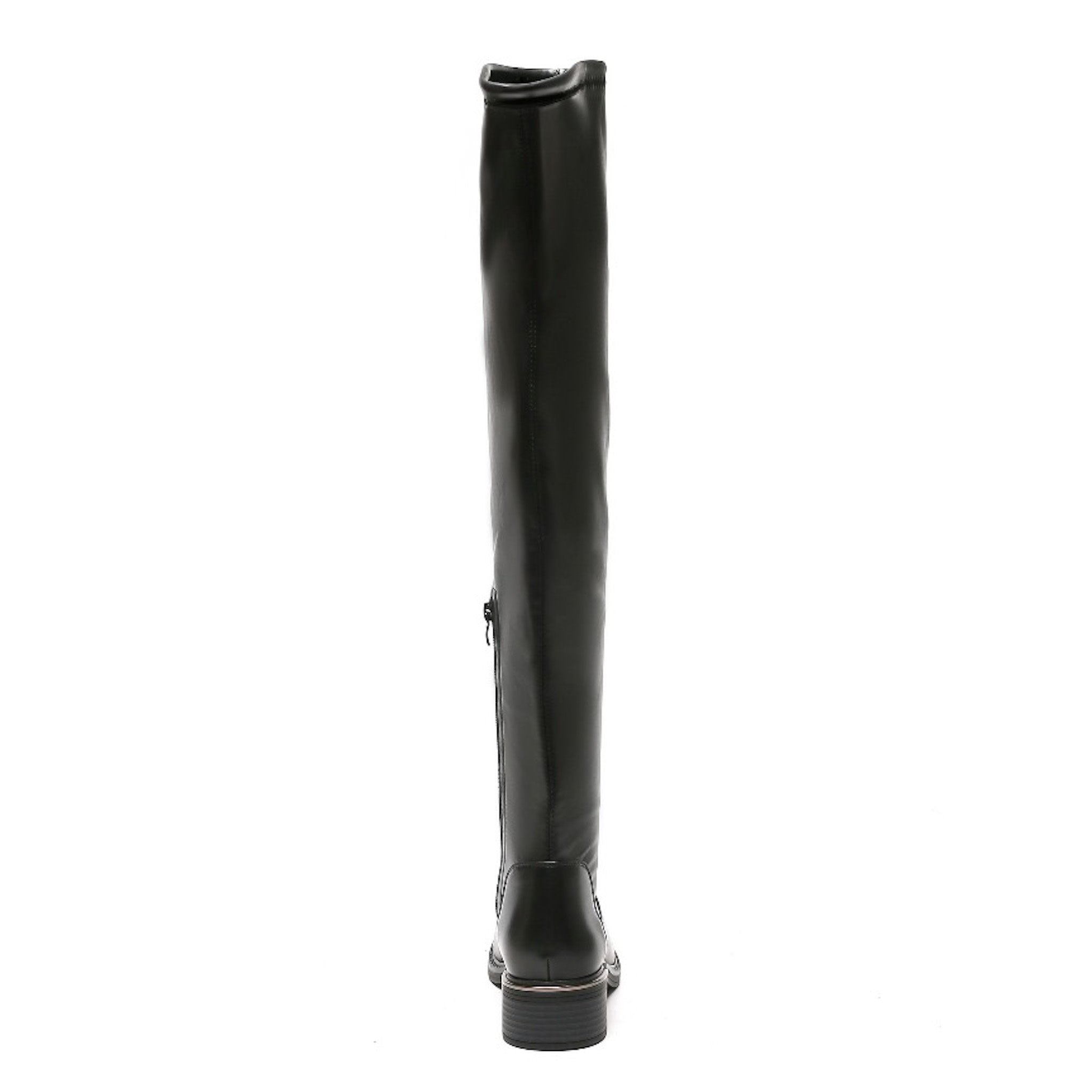 Must-have Overknee-Stiefel mit flacher Sohle. Perfekte Passform durch elatisches Lederimitat. Lange schwarze Stiefel mit kleinem Einstiegsreißverschluss an der Innenseite, mit dezentem Metallelement an der Ferse. Erhältlich in den Größen 36-41.