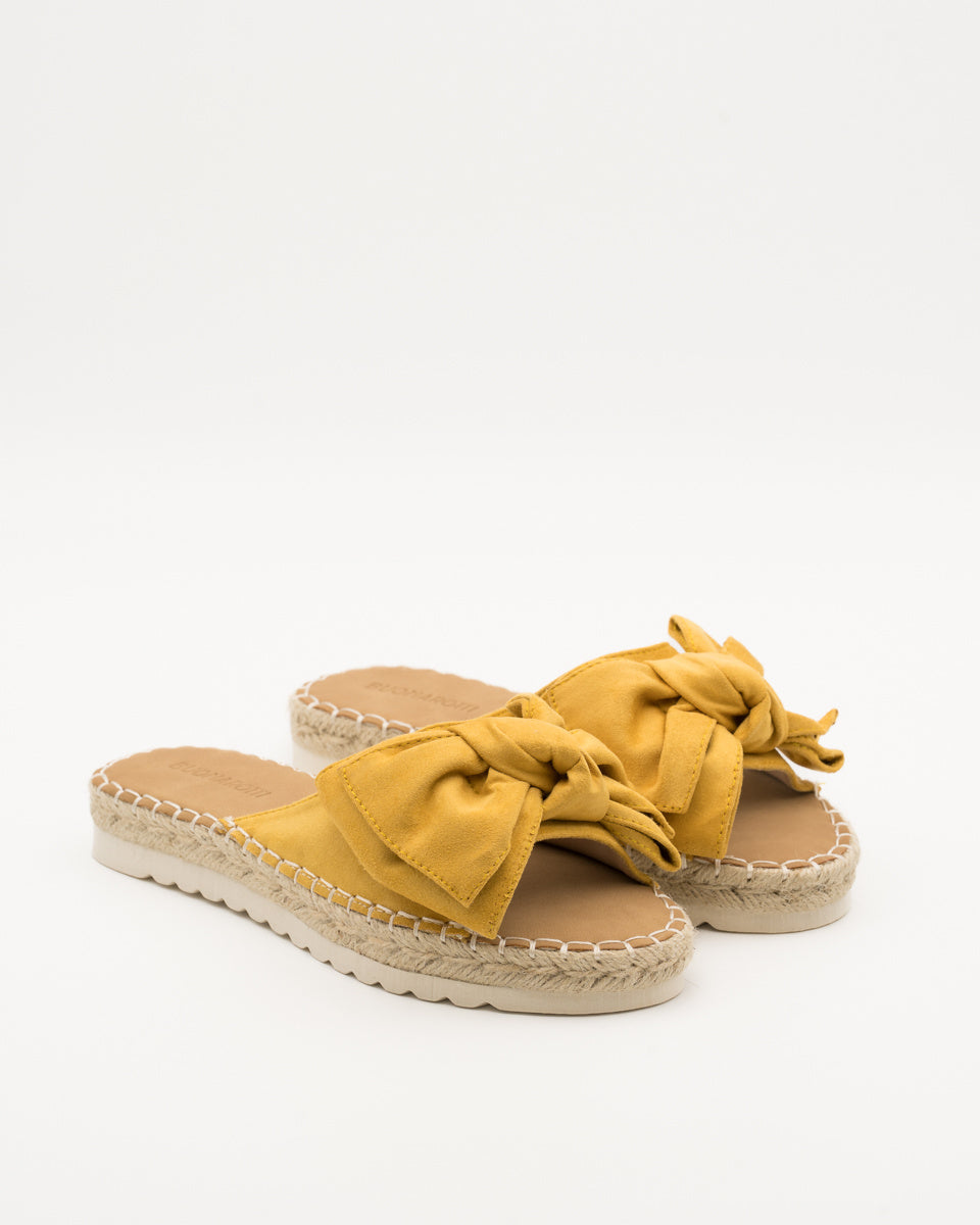Lass deine Füße strahlen mit diesen gelben Wildlederpantoffeln von Buonarotti. Die elegante Schleife und das weiche Material bieten ultimativen Komfort und Stil. Perfekt für Sommertage und mühelos kombinierbar mit jedem Look.