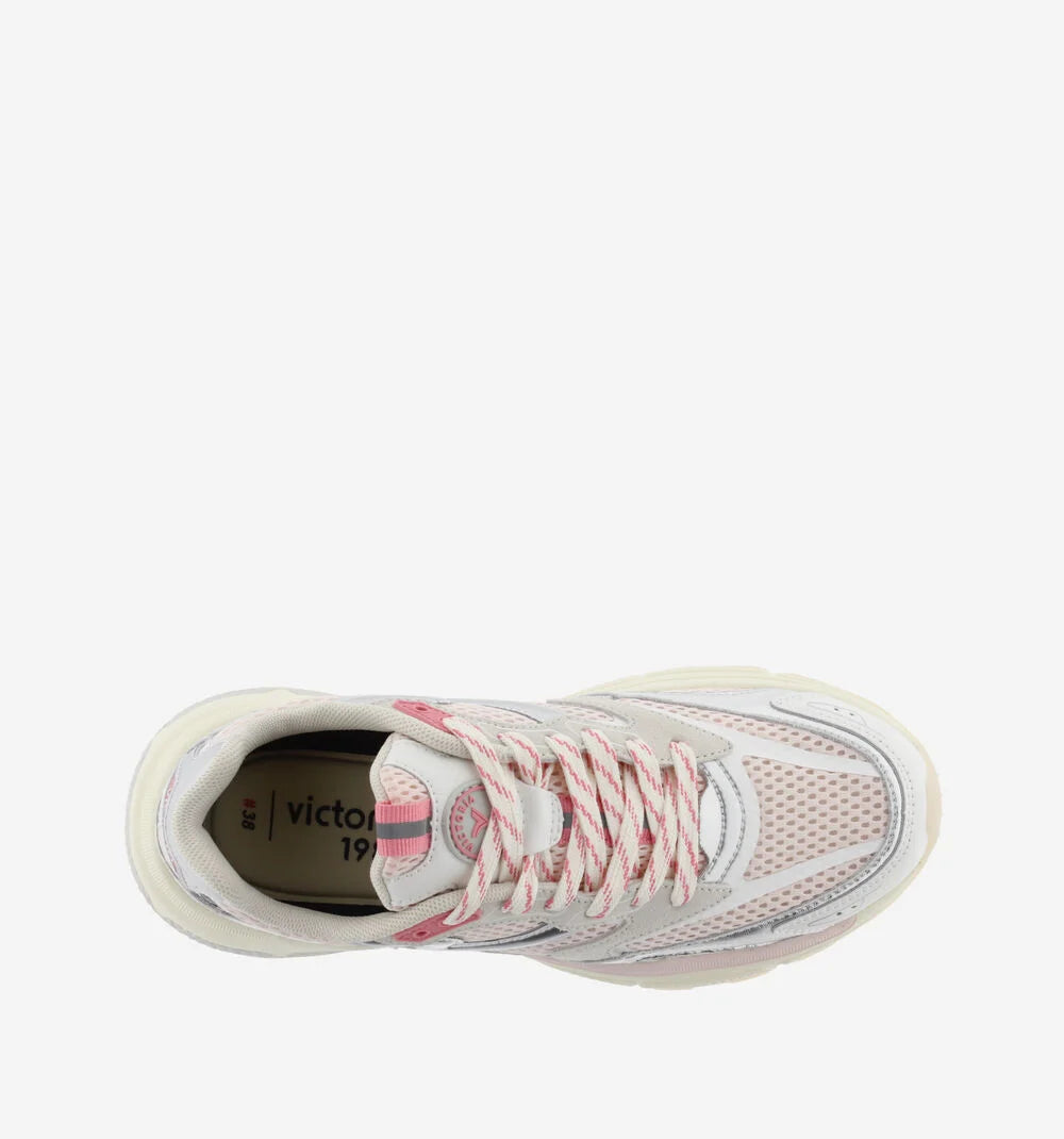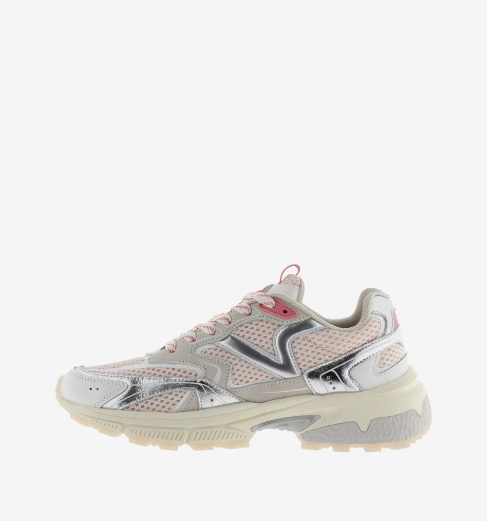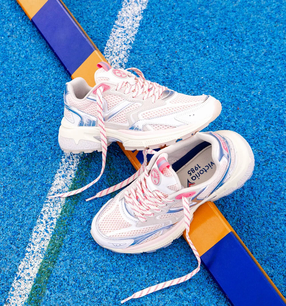 Mesh-Sportschuhe für Damen aus der Victoria 1985-Kollektion mit der neuen MYTHOS-Sohle. Diese Sneaker haben ein modernes Design mit trendigen, neuartigen Sohlen. Das Obermaterial und die Seiten sind aus Mesh gefertigt, was für Belüftung und einen sportlichen Look sorgt. Außerdem sind sie mit metallischen Overlays versehen.