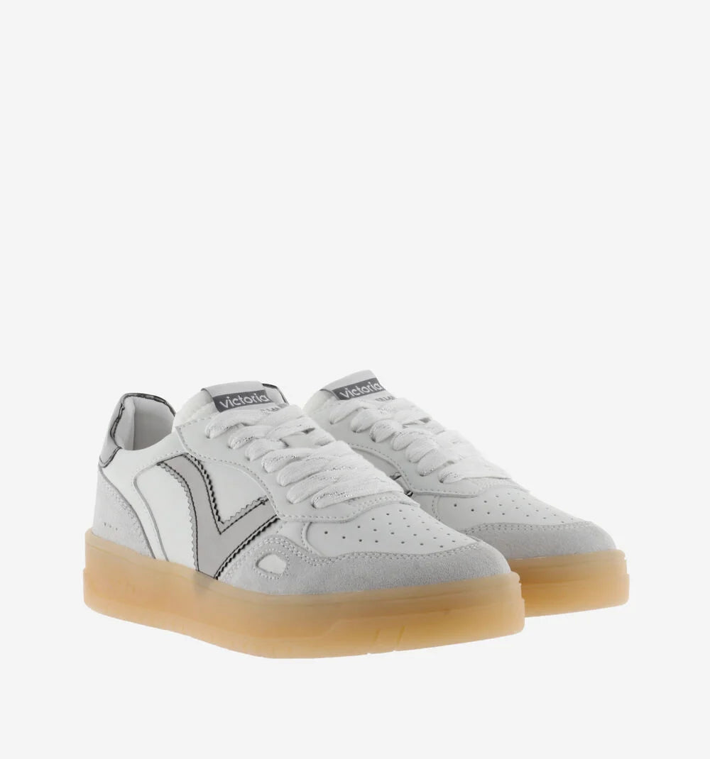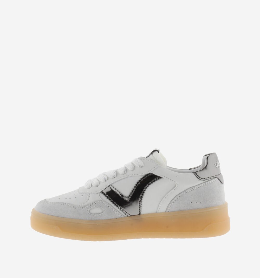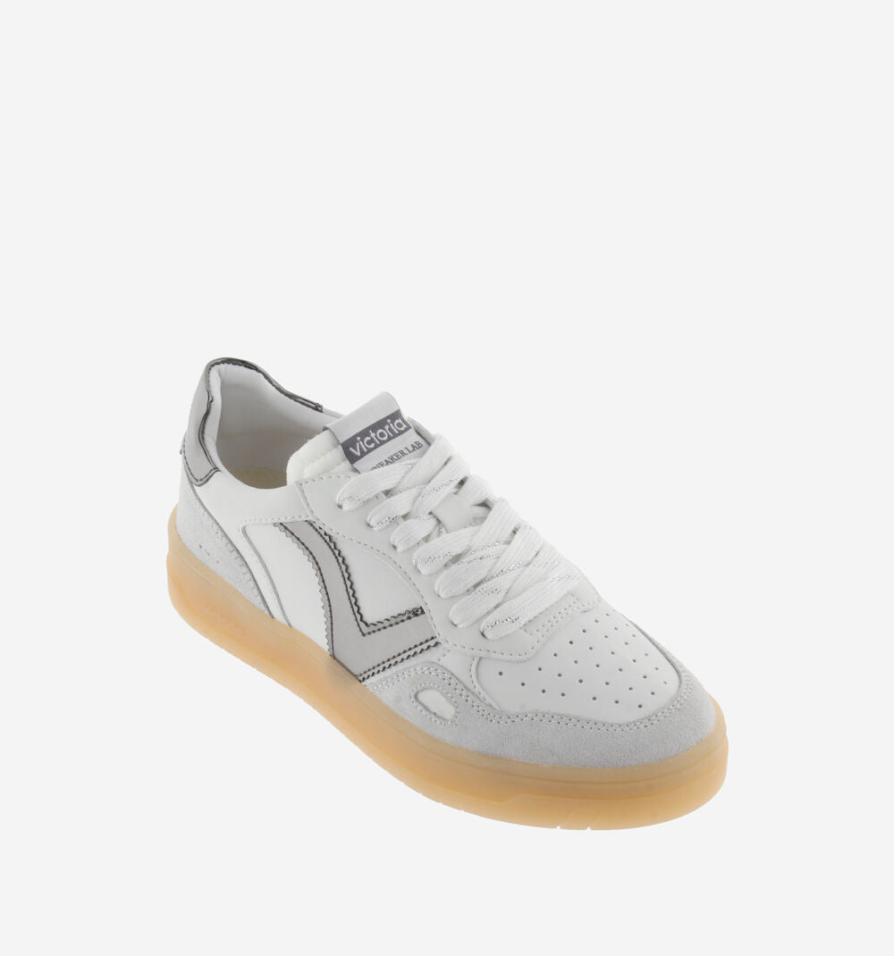 Sie suchen nach Damen-Turnschuhen, die Ihrem Look das gewisse Extra verleihen? Die White Split Leather Gun Turnschuhe von Victoria kombinieren eine klare weiße Basis mit subtilen metallischen Akzenten für einen anspruchsvollen und modernen Look. Diese weißen Damenturnschuhe sind die perfekte Wahl für alle, die einen klaren Stil mit einem Hauch von Glamour lieben.