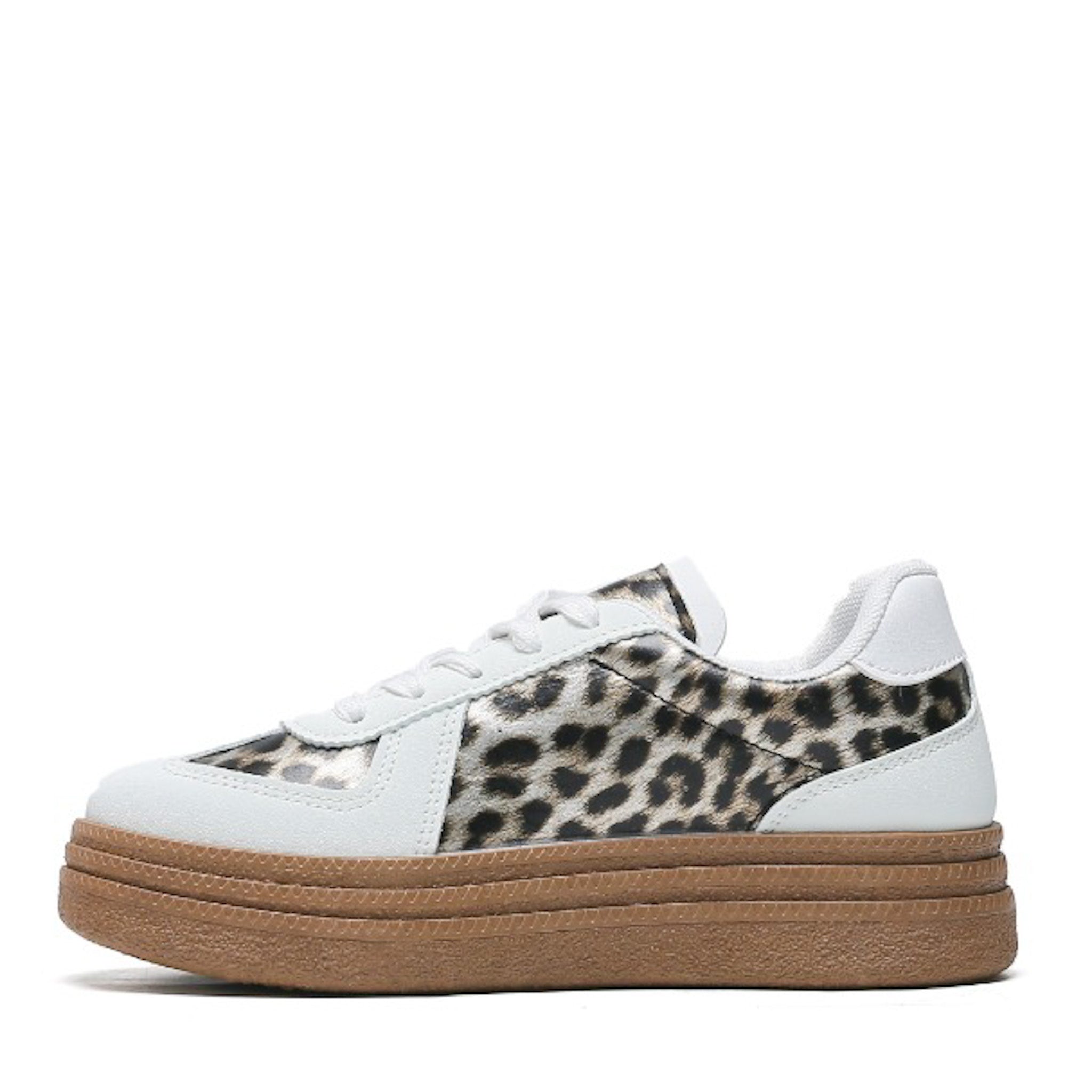 Die Turnschuhe sind aus Lederimitat gefertigt. Die robuste Sohle bietet hervorragenden Grip auf verschiedenen Untergründen, so dass Sie sicher laufen können. Die Leoparden-Print-Details verleihen dem klassischen weißen Design einen Hauch von Wildheit und machen diese Turnschuhe zu einem echten Blickfang.