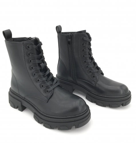 Musthave Schnürstiefel Schwarz. Erhältlich in den Größen 36 bis 41. Aus Lederimitat. Mit Reißverschluss auf der Innenseite des Spanns.