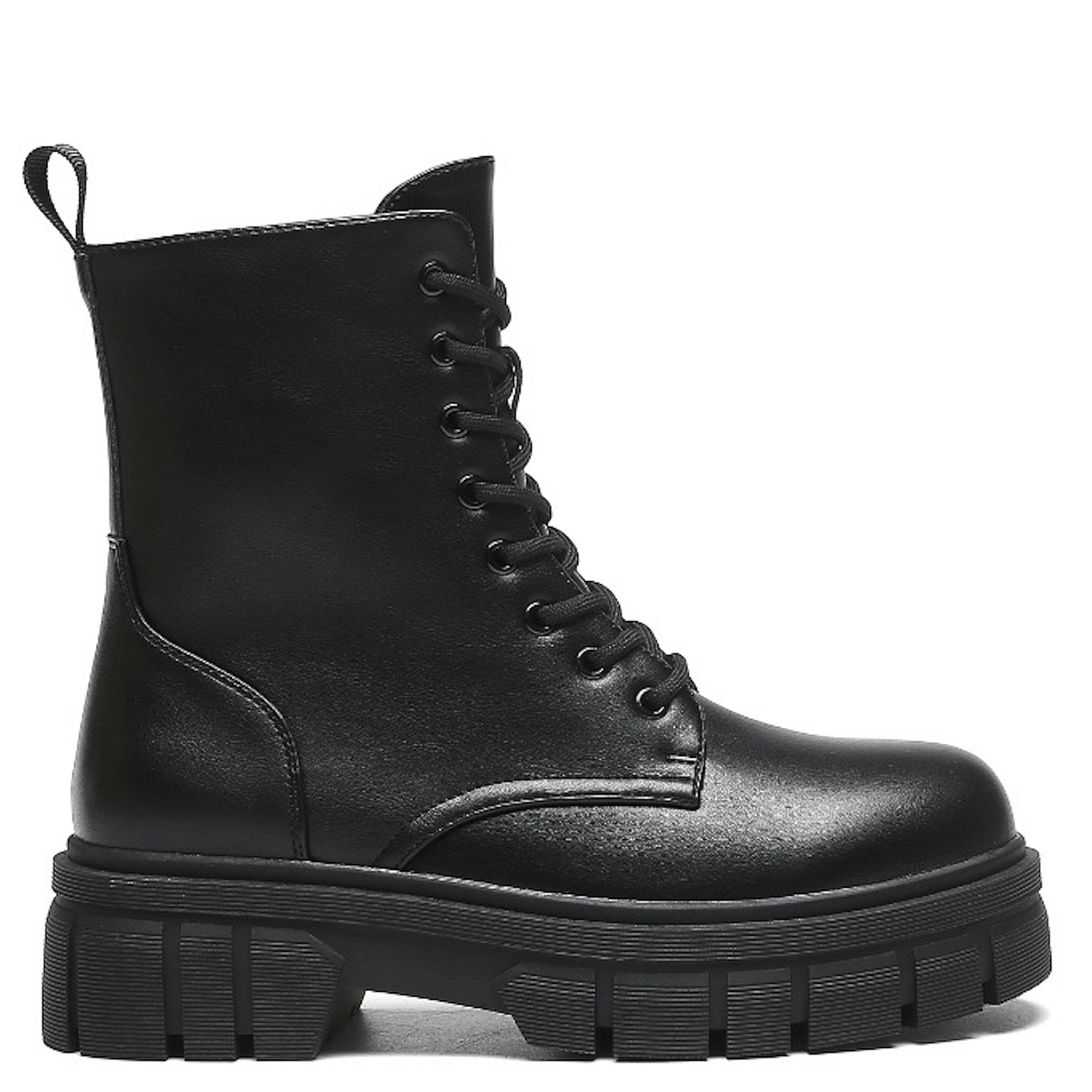 Schwarze Schnürstiefel mit Plateausohle
