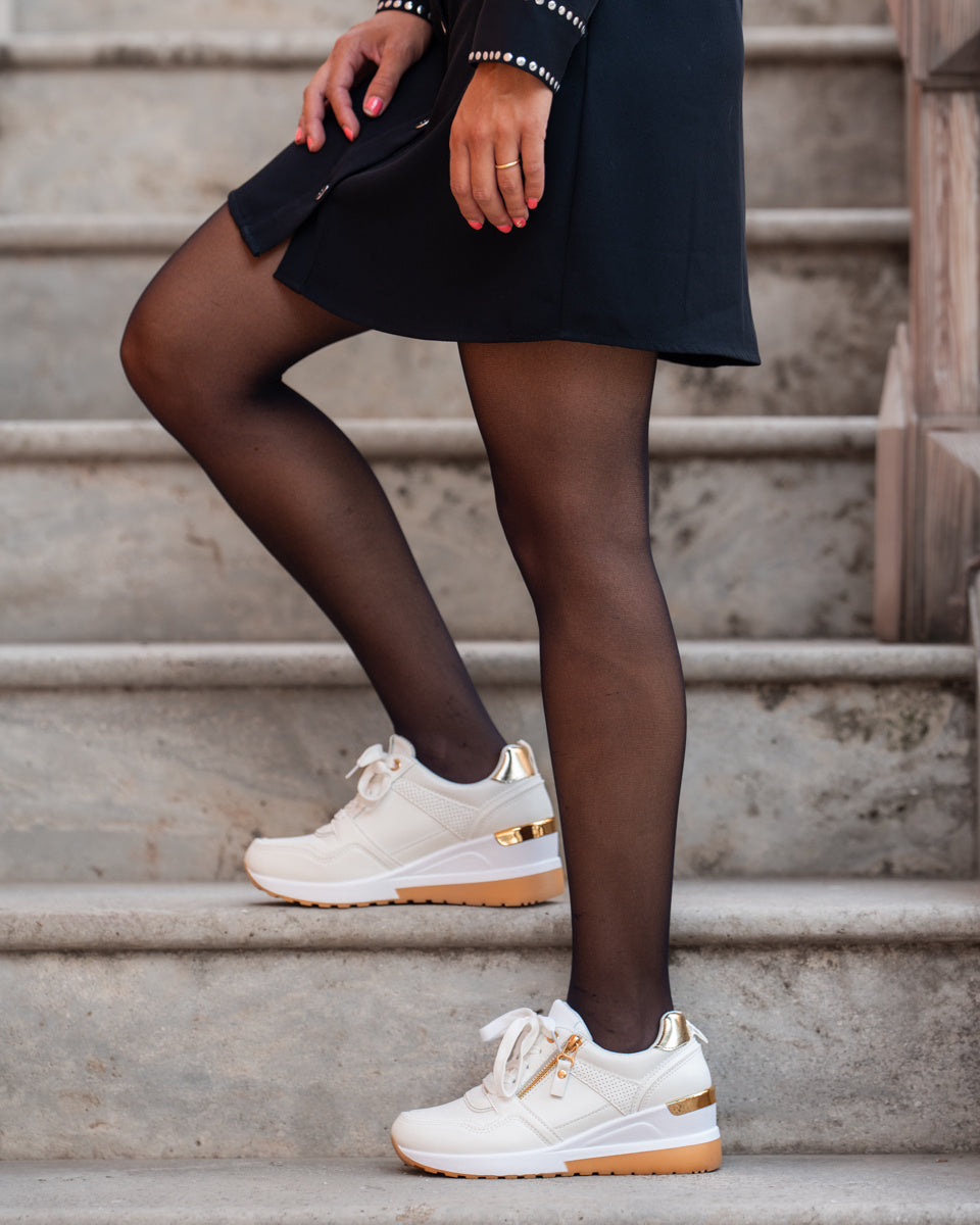 Wedge Sneakers Weiß Zipper Gold